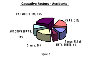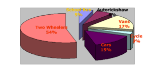 The above pie diagram shows that 49% of accidents involving school children are due to personalized vehicles such as two wheelers and cars.