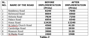 Traffic congestion was reduced by 20% – 25% in the central area in the morning and evening peak hours.  The density of the traffic on the following roads before and after the implementation is as follows.