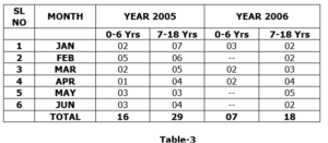 The use of unsafe private modes of transport along with auto rickshaws also contribute enormously to road accidents involving school children.   The number of school children killed and injured for 3 years up to the year 2005 is given in the table below