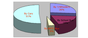 Majority of the school children who travel in private vehicles go to the central areas where prestigious schools are located.  Usage of private vehicle for school children account for 20-25% of morning traffic as parents drive their children to school.  As a result traffic congestion has increased around school the schools  prompting more parents preferring to drive their children to school.